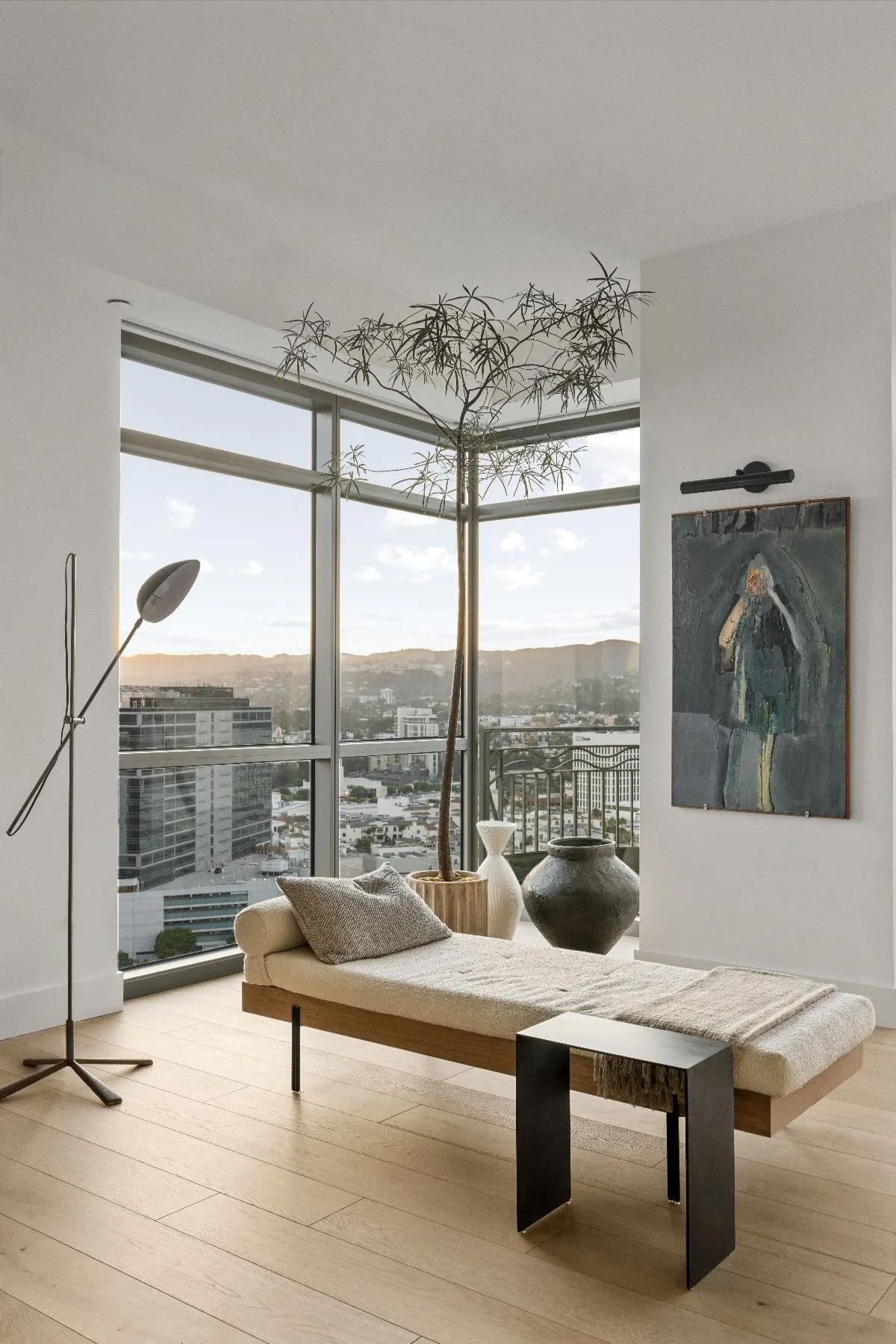 These two visions come together and are connected by a whimsical media room complete with cozy bunk beds, wine fridge and built-ins. This one of a kind residence, with two balconies, two elevators direct to the unit overlooking the city, has a uniquely flexible floor plan for all living arrangements. This full service bldg in close proximity to great restaurants, shops, hospitals and UCLA has 24-hour valet, concierge, modern fitness center, pool, with cabanas, media room, conference room, banquet room and more.